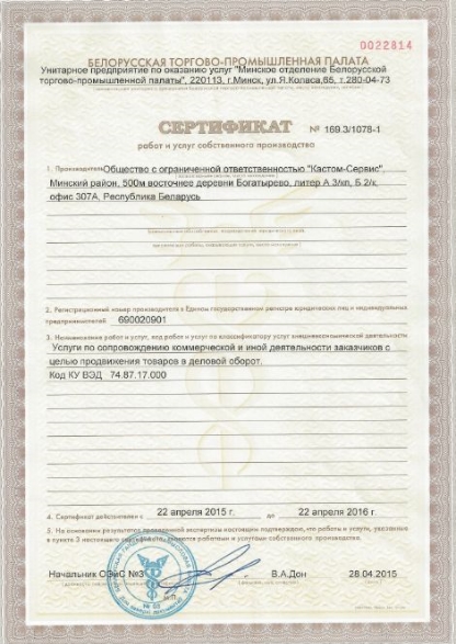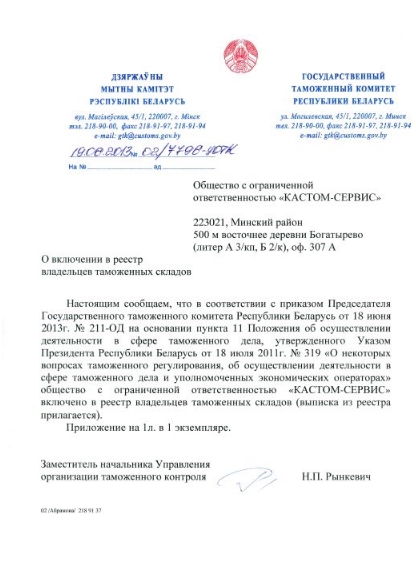 +375 17 510 16 21 +375 44 599 29 98 e-mail: info@customs-service.by
